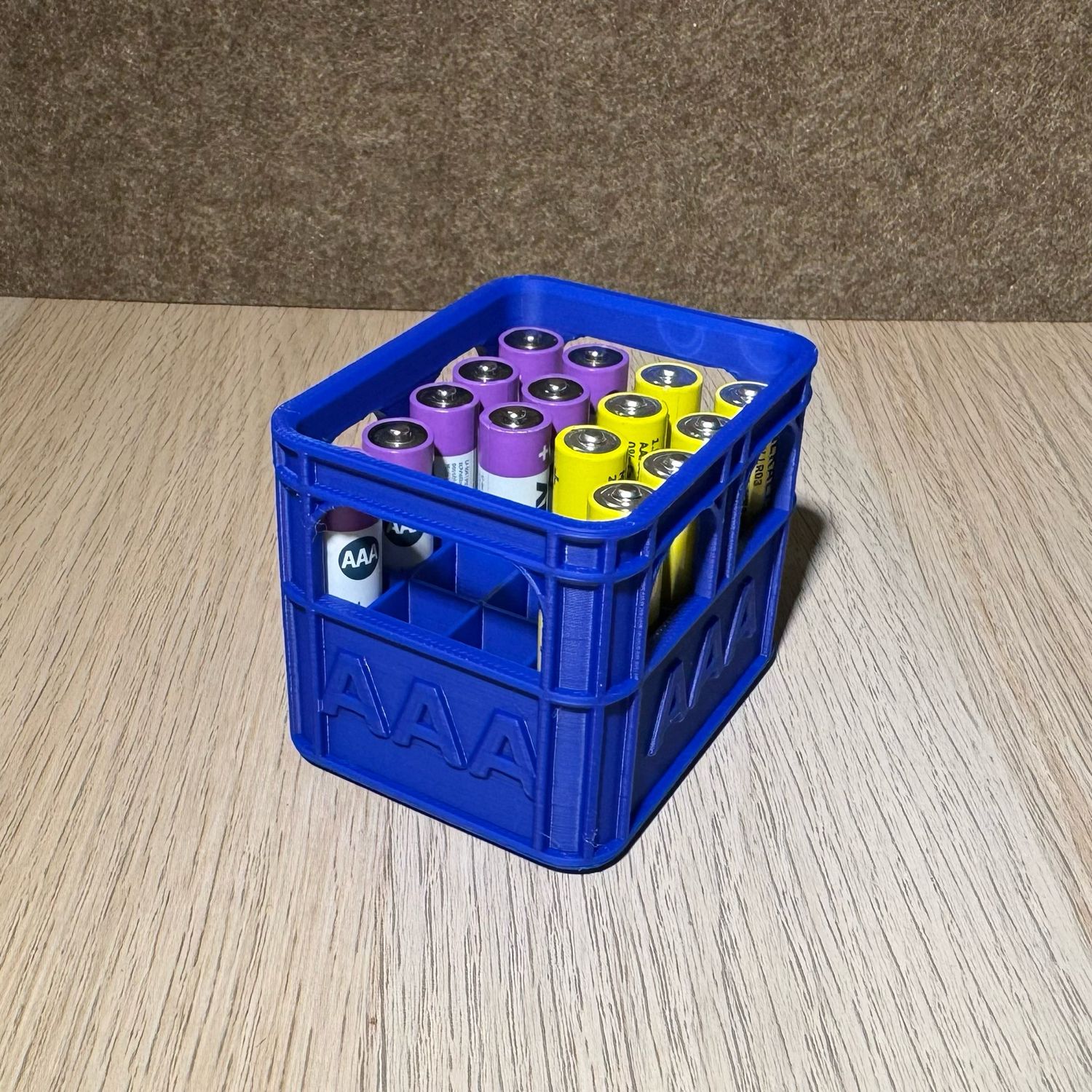 Die Kisten lassen sich, ganz wie im Original, stapeln und fassen jeweils 12x AA, 20x AAA, oder 5x 9-Volt Zellen.